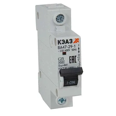 Модульный автоматический 1 полюсный выключатель переменного тока с предельной коммутационной способностью при переменном токе 4.5 кА на номинальный ток 6 А .