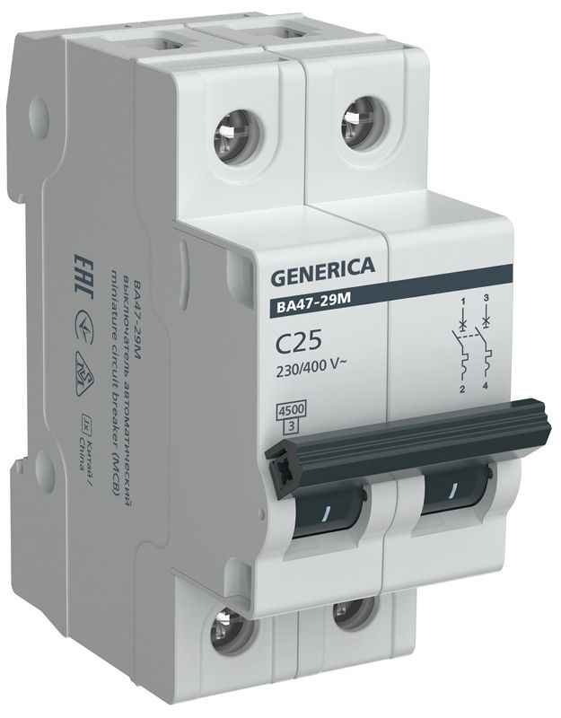 Выключатель автоматический модульный 2п C 25А 4.5кА ВА47-29М GENERICA MVA21-2-025-C-G