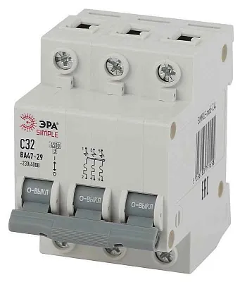 Выключатель автоматический модульный 3п C 32А 4.5кА ВА 47-29 SIMPLE-mod-24 ЭРА Б0039241 купить в Москве - цены, доставка по РФ