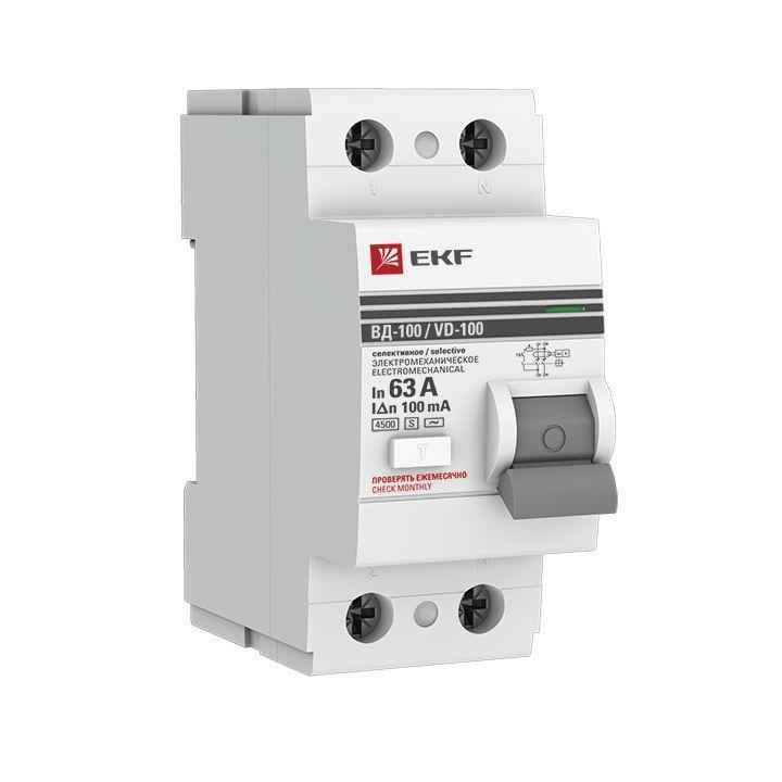 Выключатель дифференциального тока (УЗО) 2п 63А 100мА тип AC ВД-100 (электромех.) PROxima EKF elcb-2-63-100S-em-pro
