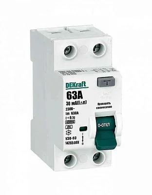 Выключатель дифференциального тока (УЗО) 2п 63А 30мА тип A 6кА УЗО-03 DEKraft 14265DEK