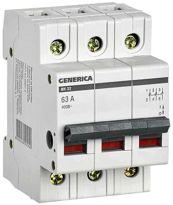Выключатель нагрузки (мини-рубильник) 3п 63А ВН-32 GENERICA MNV15-3-063