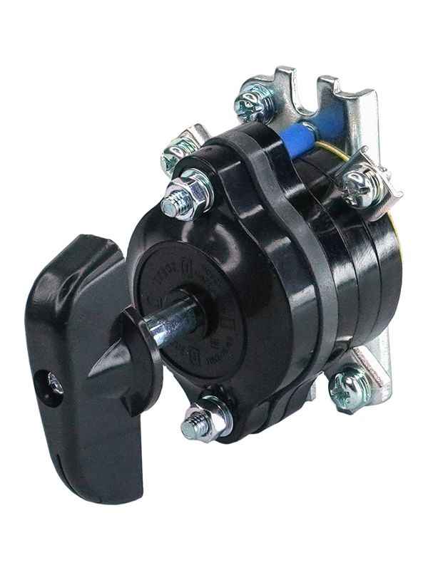 При повороте рукоятки механизм выключателя обеспечивает коммутацию электрических цепей. Конструкцией выключателя обеспечивается двойной разрыв дуги в каждой фазе, имеются искрогасительные шайбы. Работает при любом положении в пространстве, имеет малую чувствительность к ударам и вибрации.