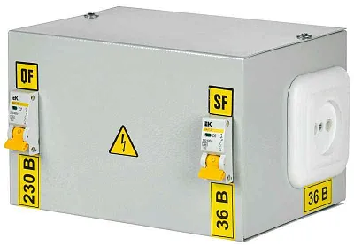 Ящик с понижающим трансформатором ЯТП 0.25 230/36В (2 авт. выкл.) 36 УХЛ4 IP30 IEK MTT12-036-0250